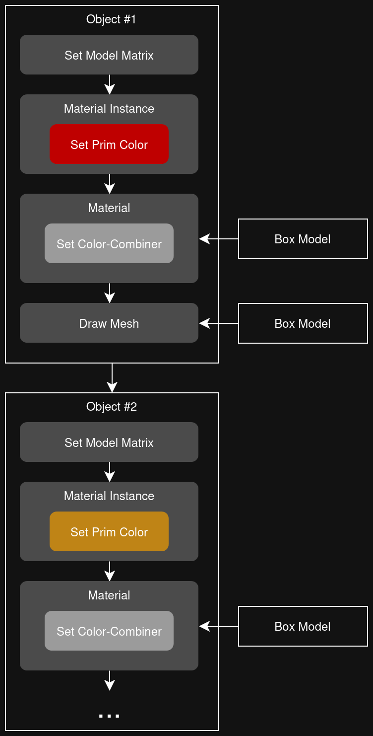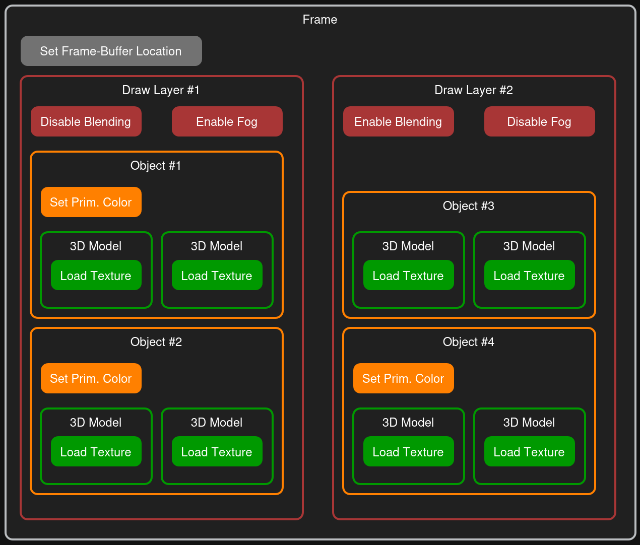 When it comes to rendering, the sequence of draw calls may look like this (simplified):