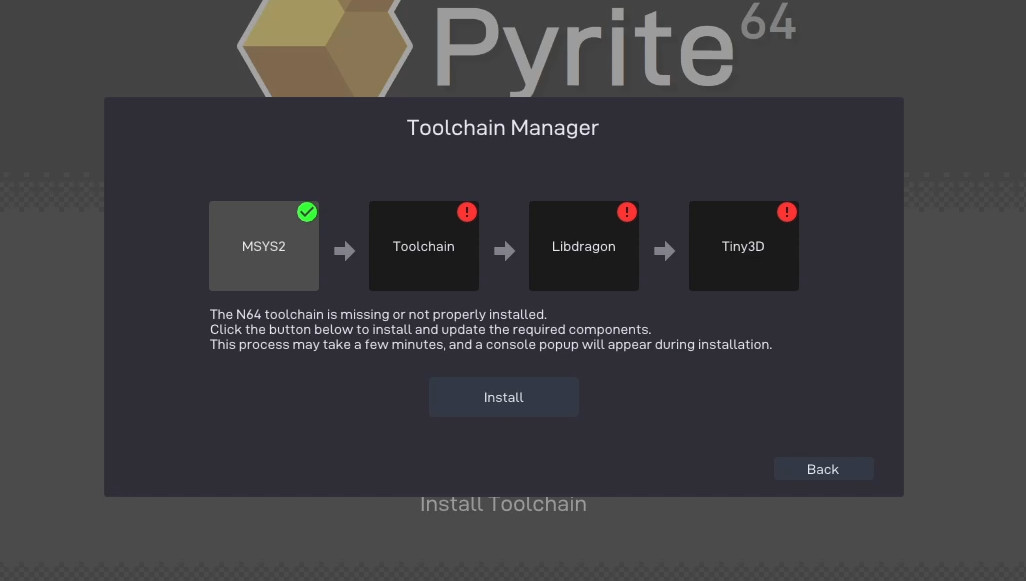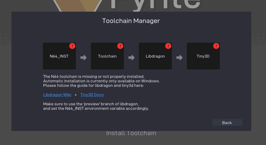 If this is your first time opening the editor, it may only show the “Toolchain” option.